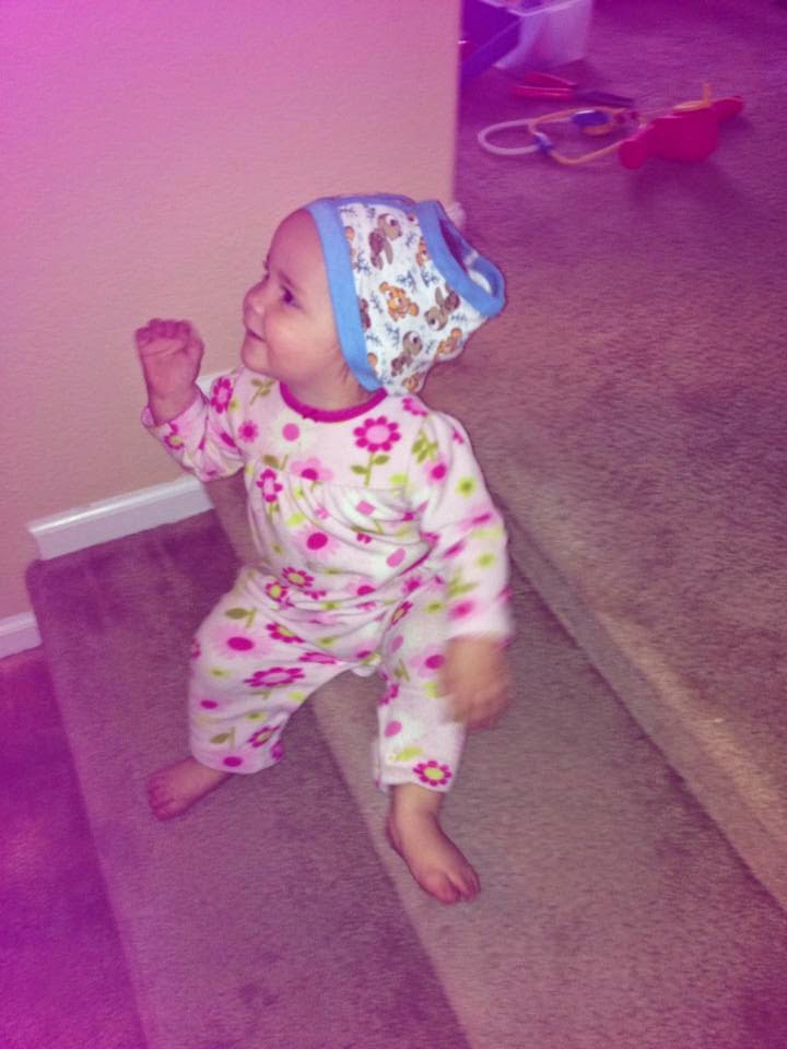 She was my first and kind of the trainer baby...Through her learned that babies are bendy, scrapes won't kill, not all falls cause brain damage...important things like that.